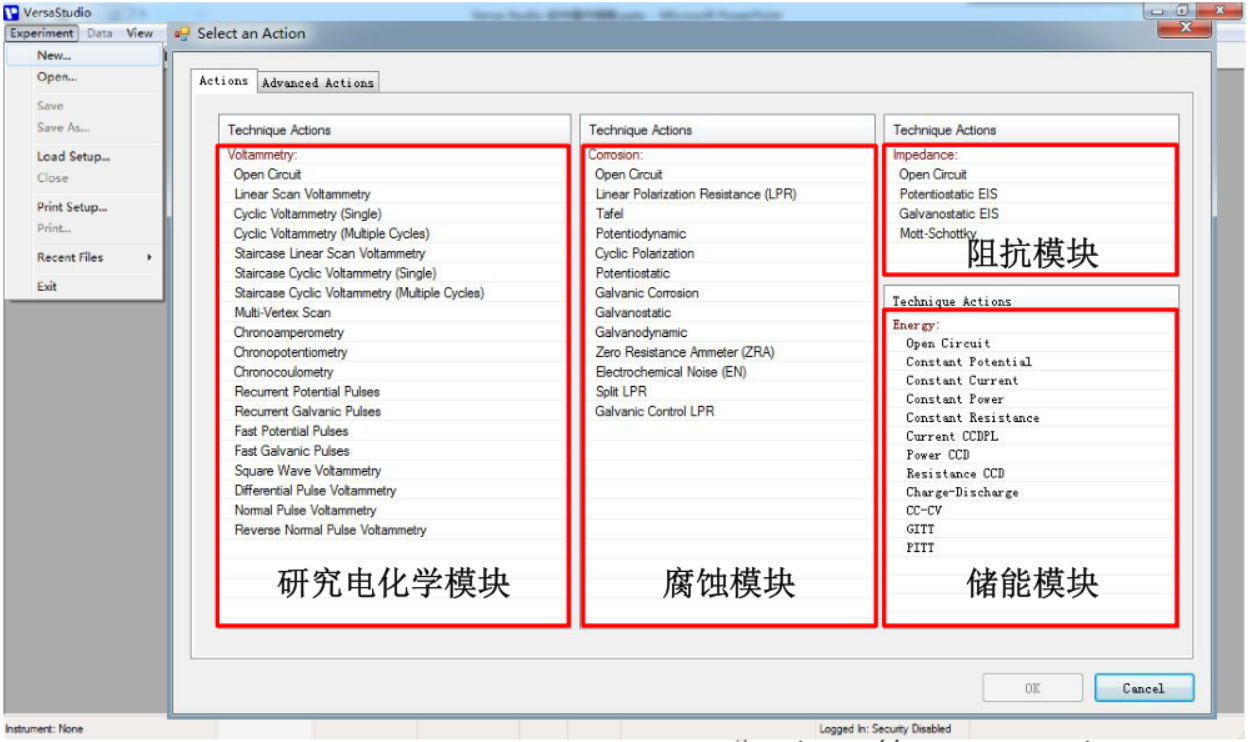 VersaStudio软件使用,打开软件,点击ExperimentNew,选择相应测量方法,点击OK