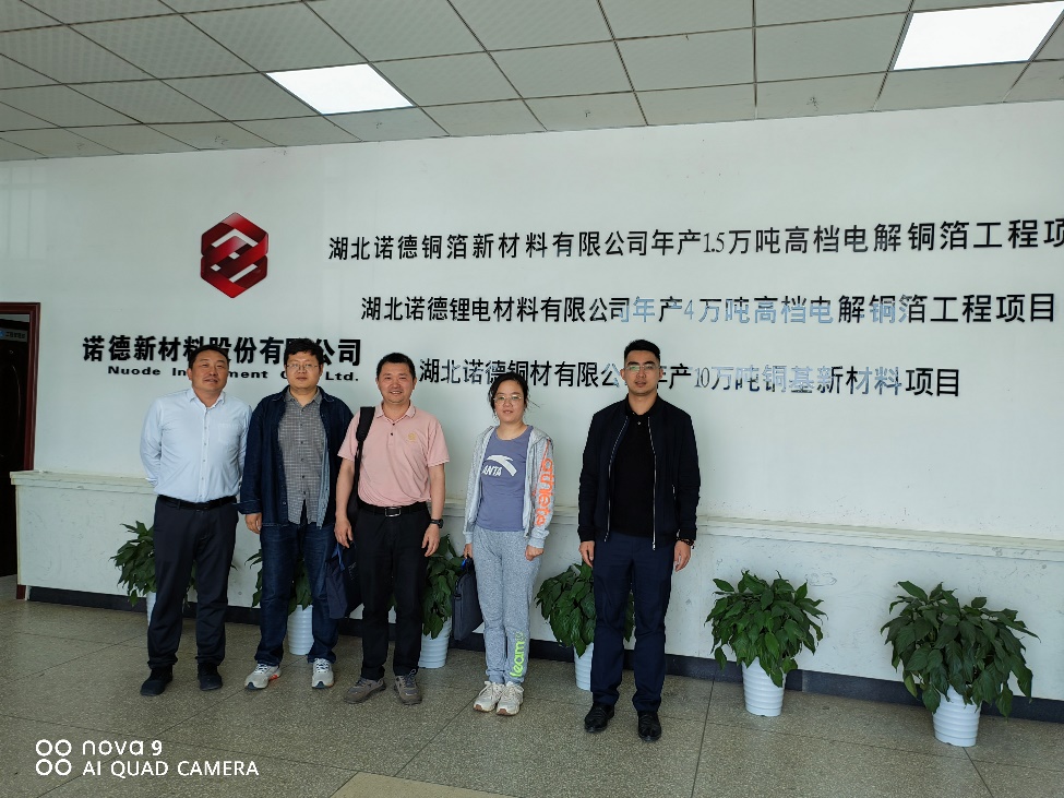5月9日,在科学研究发展院的候功显主任的带领下,太阳成集团tyc33455杨伦副院长、实验技术人员刘迎一行赴湖北诺德电解铜箔项目部开展科研交流活动。湖北诺德电解铜箔项目部人力资源部高振清总监参加座谈并交流,就双方的合作内容以及合作形式展开详细的讨论。