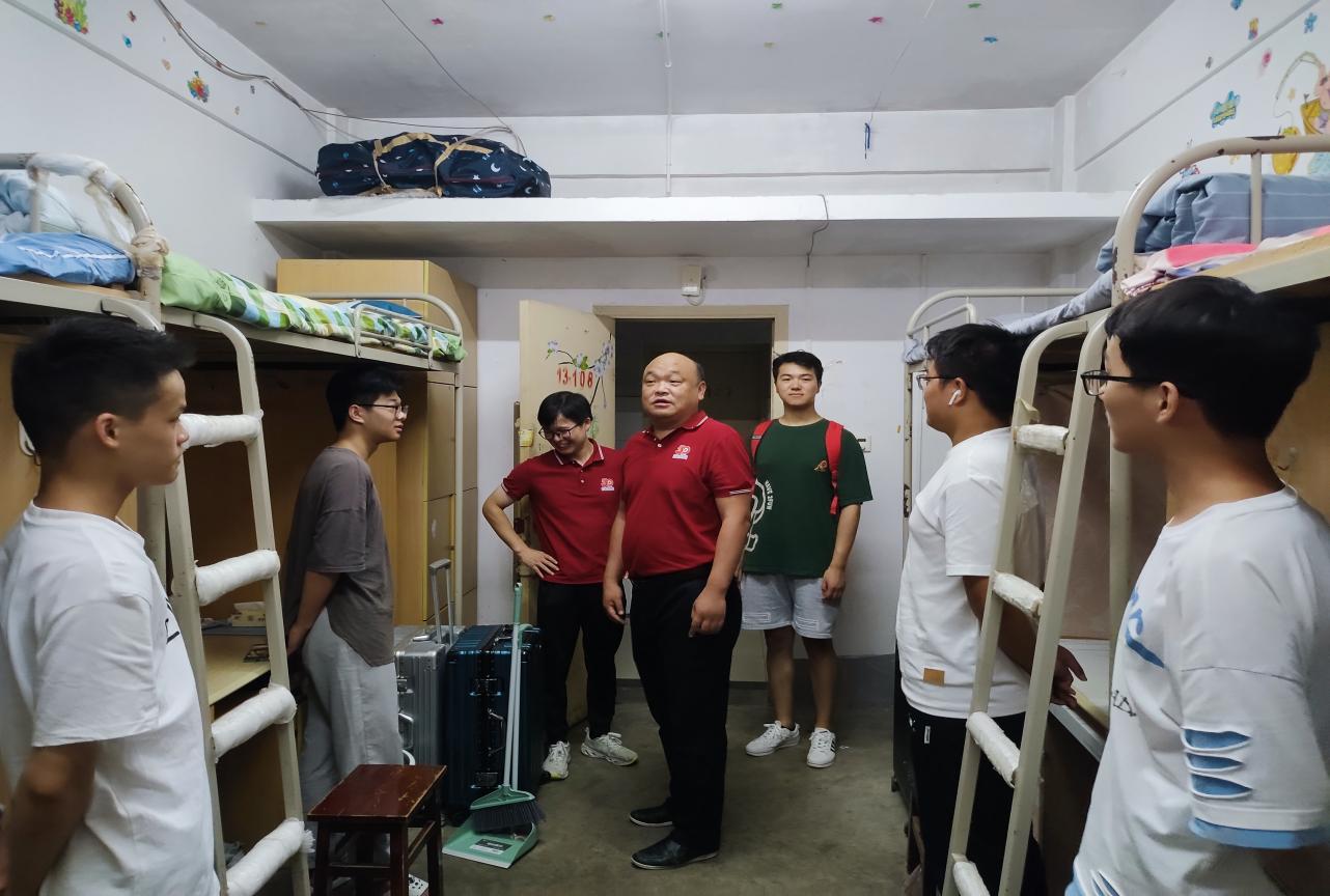 学院领导、班主任、辅导员老师和新同学们进行了亲切交谈,询问了同学们的个人情况、宿舍生活和校园适应状况。刘飞走访研究生宿舍时,嘱咐新生要尽快完成自己的身份转变,适应新的学习和生活节奏,表示研究生与本科生不一样,并以研三学长为例,讲述许多暑假留校战高温冒酷暑、埋头搞科研的典型案例,鼓励同学们一定要锚定方向,加倍努力,争取早日发表优秀的学术论文。