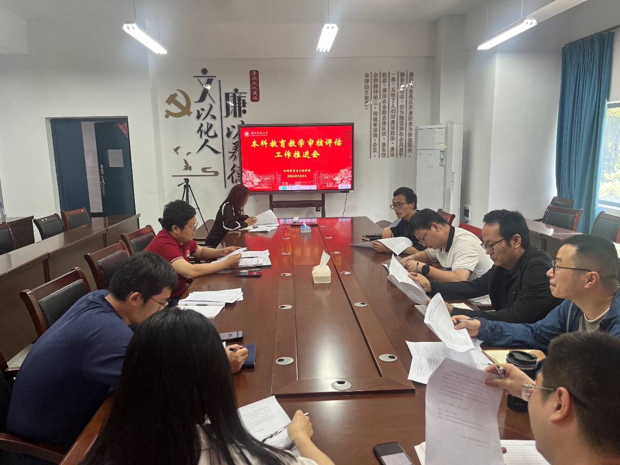 为继续推进本科教育教学审核评估自评自建工作,5月9日下午,学院在24424会议室召开本科教育教学审核评估工作推进会。学院审核评估工作小组全体成员参加了会议,会议由学院副院长杨伦主持。