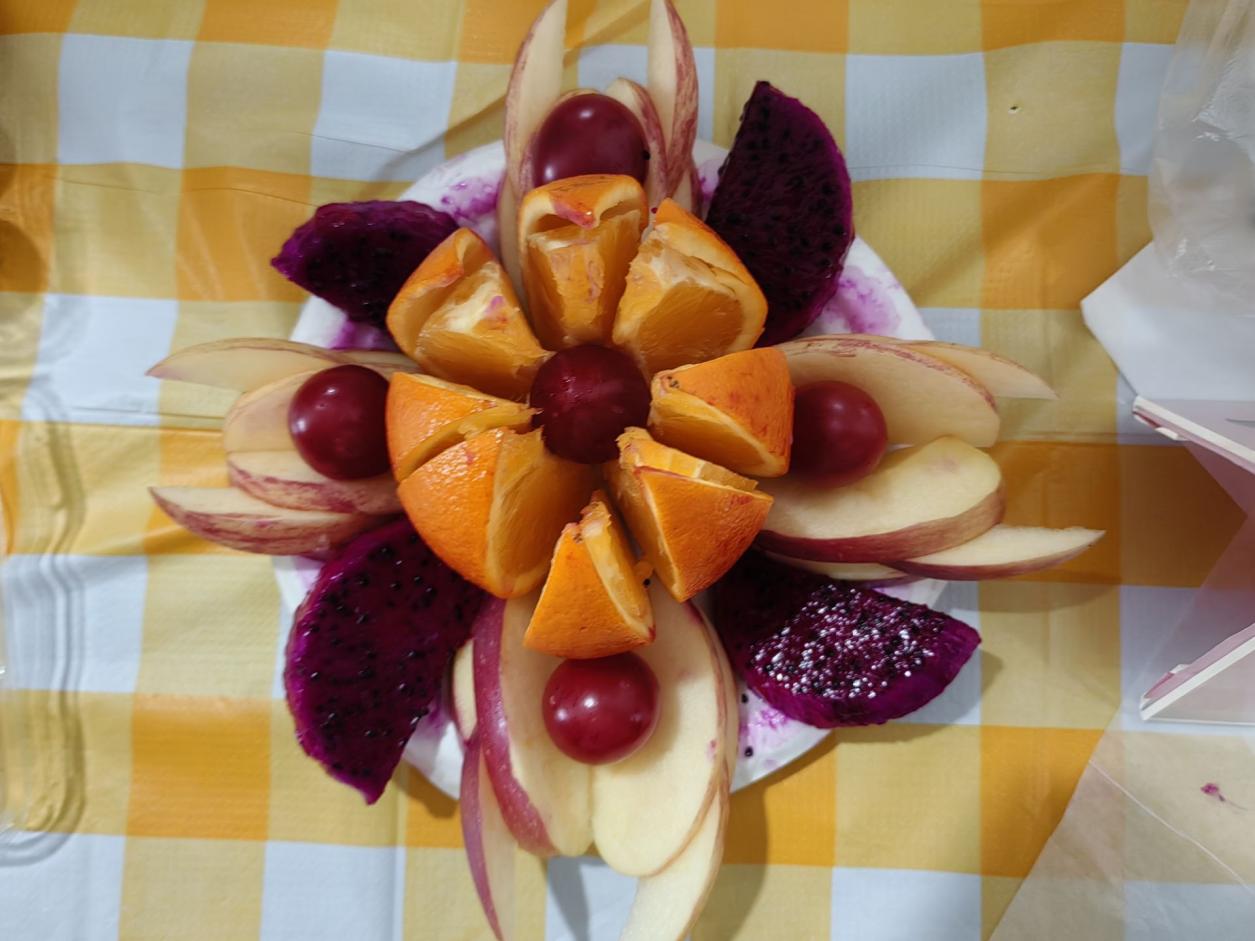 活动现场,学生们纷纷展示了自己的创意美食。色彩丰富、香甜可口的面食和水果拼盘吸引了评委老师们的目光。评委们认真品尝每一道作品,对学生们的创意和手艺赞不绝口,纷纷将宝贵的票投给了心仪的作品。