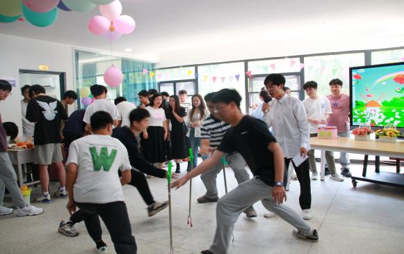 与此同时,另一边的心灵小游戏也进行得如火如荼。考验团队合作与反应能力的欢乐团团转游戏,紧张又刺激,不仅释放了压力,也增进了友谊;心意相通充分展现了智慧与机敏,也增进了彼此之间的了解与信任和心意相通。游戏过程中,气氛融洽,欢声笑语不断。情绪激昂时,甚至有同学献歌一曲,将现场气氛推向高潮。
