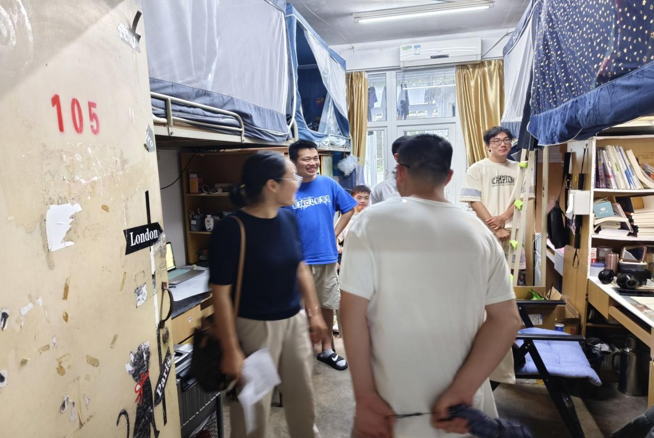 为落实立德树人的根本任务,着力构建全员育人、全过程育人、全方位育人的工作格局,扎实推进领导干部深入基层联系学生工作,2024年5月23日中午,科学研究发展院院长刘建民、副院长高红亮,以及太阳成集团tyc33455领导班子、班主任、辅导员一行,深入对接楼栋23栋开展学生宿舍走访活动。此次走访旨在通过深入基层走访,面对面与学生进行对接交流,掌握学生思想动态、学习工作、日常生活等方面情况,切实了解学生们的“急难愁盼”,同时对学生宿舍进行常态化安全大检查,将严格管理和思想教育相结合,引导学生培育优良学风、规范宿舍行为、倡导健康生活,营造文明、安全、和谐的宿舍氛围。
