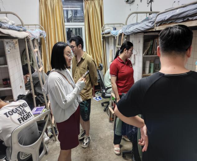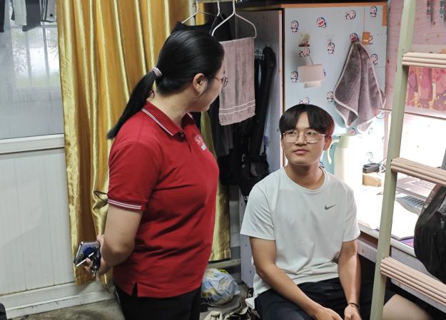 在期末考试临近之际,为深入了解学生的备考状态,进一步落实安全教育管理工作。2024年6月30日晚,我院党委副书记殷婷婷,2301班班主任张勇军、2302班班主任熊东彬,辅导员林静深入学生宿舍开展走访慰问活动。