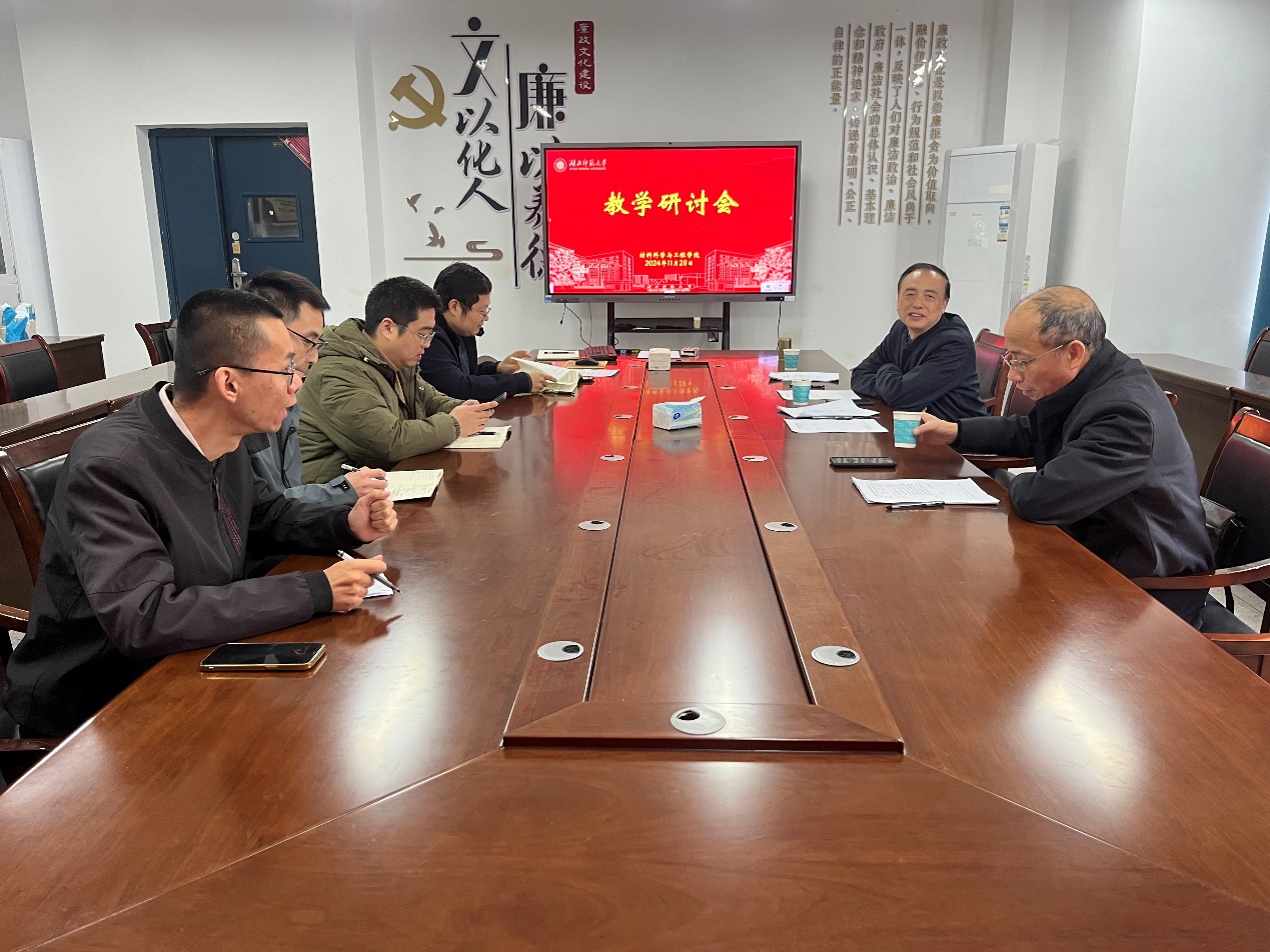 2024年11月28日上午,学院在产教融合中心24424会议室组织召开了本学期期末考试专题教学研讨会。会议由学院副院长杨伦主持,学院教研室主任周建清、曹艺、王心宇,教学科研办公室副主任熊峰参加了会议。此外,会议还邀请了李江林教授和张少武教授进行指导。