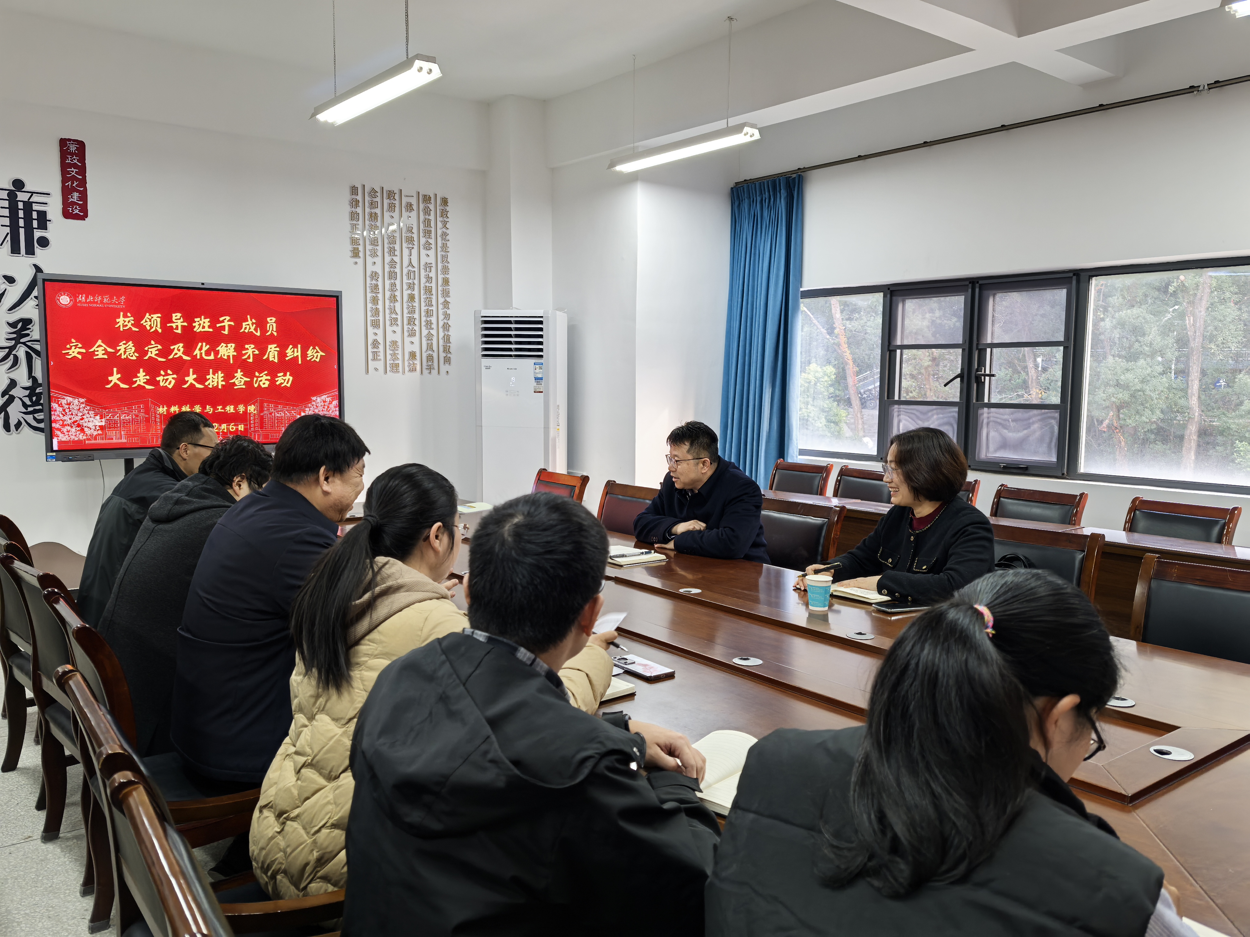 12月6日下午,校党委书记李宏带领党政办负责人到材料科学工程学院进行安全稳定工作调研座谈,学院领导班子、师生代表共14人参加座谈会议。会议由学院党委副书记殷婷婷主持。