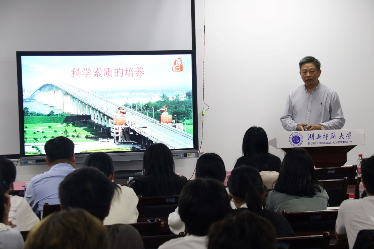 紧接着,刘堂昆教授以《科学素质的培养》为大家带来了精彩的讲座。他首先以黄瑞云和王路两位优秀教师的故事为引介绍了学校的文化,然后阐述了科学素质的概念与内涵,并结合材料领域的专业知识和科技前沿理论,就青年学生如果做好人生未来的规划做了详实的指导。他希望广大学子能树立终身学习理念,通过多观察、多思考、多学习、多探究,不断提升个人的科学素养,勉励青年学生学以致用、科学报国、崇尚创新、勇攀高峰。刘教授的讲座理论深厚、内涵丰富、语言生动,为在场师生的科研之路提供了宝贵的指引,赢得了阵阵掌声。