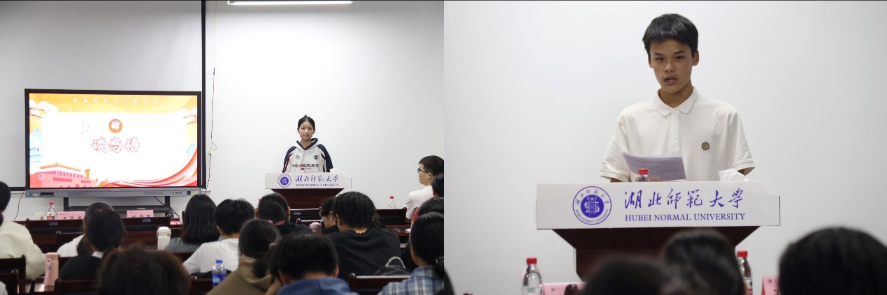 讲座之后,叶严婷和张家富两位同学先后上台分享了自己的心得与体会。他们表示,要努力学习科学家精神,立足当下,勤奋学习,刻苦专研,不断提升自身能力素质,为国家的科技进步贡献自己的青春智慧和力量。
