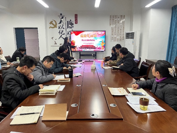 在专题学习环节,刘易斯同志领学了习近平文化思想概述和中共中央宣传部发出关于认真组织学习《习近平文化思想学习纲要》的通知;张勇军同志领学了习近平对新时代马克思主义理论研究和建设工程作出的重要指示强调;曹艺同志领学了省委十二届八次全会通过的《中共湖北省关于深入学习贯彻习近平总书记考察湖北重要讲话精神、奋力谱写中国式现代化湖北篇章的决定》;殷婷婷同志领学了《求是》杂志发表习近平总书记重要文章《必须坚持守正创新》;曹涛同志领学了习近平总书记在国家勋章和国家荣誉称号颁授仪式上的讲话;孙富华同志领学了不断开辟马克思主义中国化时代化新境界——深入推进马克思主义理论研究和建设工程综述。