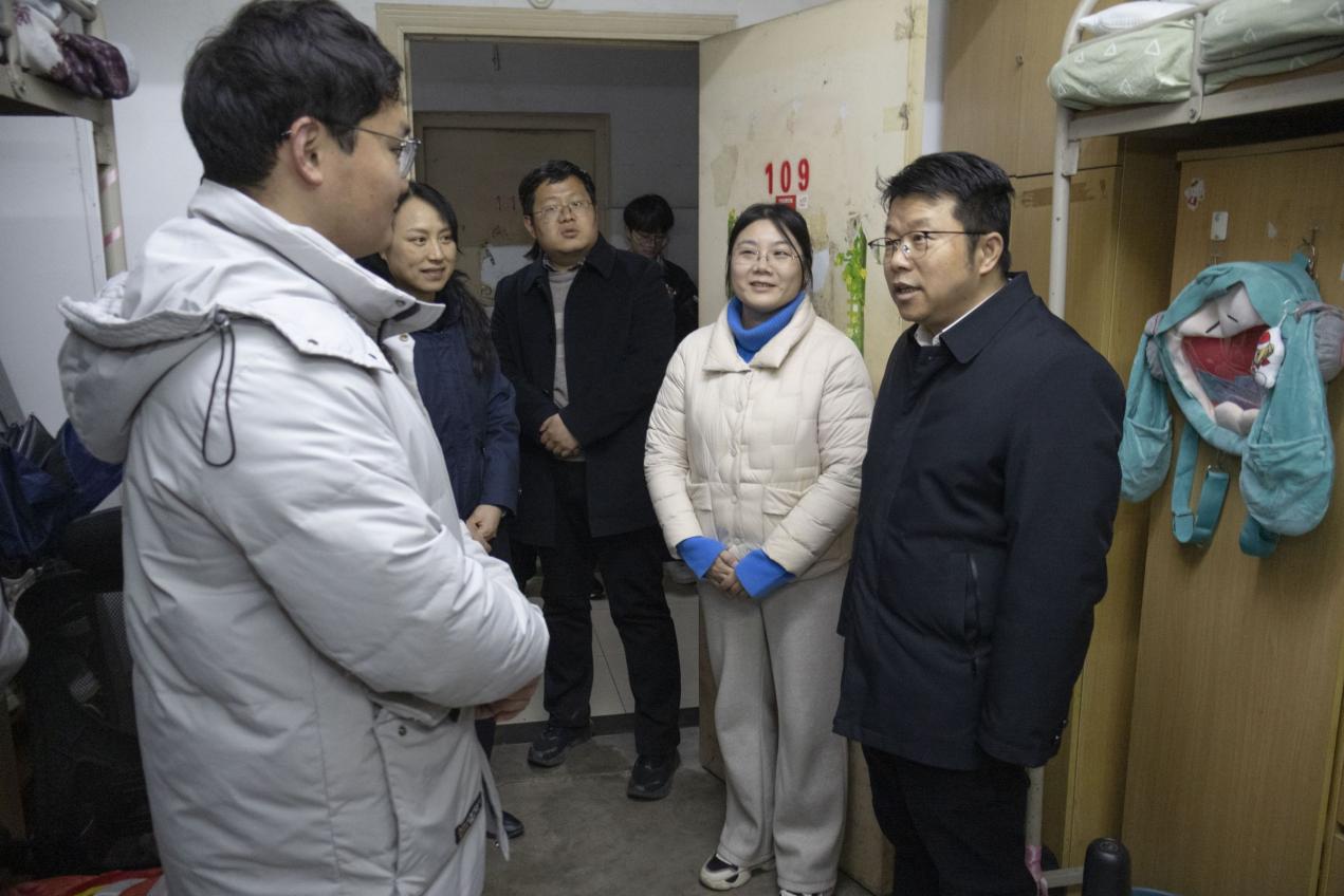 新学期伊始,为深入了解学生开学返校情况和学习生活状态,加强与学生的沟通交流,切实做好新学期的管理服务工作。2月16日晚7点,校党委书记李宏到我院学生宿舍走访慰问返校学生。党政办主任邵幼岩、学工部部长李洁及学院领导班子、班主任、辅导员参加走访慰问活动。