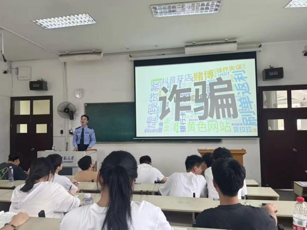 为提高学生防范电信网络诈骗的意识和能力,有效预防和减少诈骗案件发生,我院于5月14日下午2:30在教育大楼1J11教室开展防范电信网络诈骗宣传教育专题讲座。本次讲座特邀黄石市公安局黄石港区分局团委书记徐梁担任主讲人,讲座由辅导员林静主持,学院全体本科生和研究生积极参与。