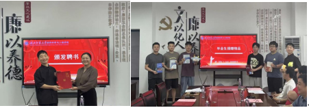 为搭建校友与母校沟通桥梁,学院特聘优秀毕业生陈浩担任校友联络员,党委副书记殷婷婷为其颁发聘书。毕业生们为表达对母校的感恩之情,捐赠了书籍、手写笔记、治愈娃娃等物品。这些物品承载着他们的青春记忆与对母校的眷恋,学院将妥善保管并用于未来的教育教学及人才培养工作。