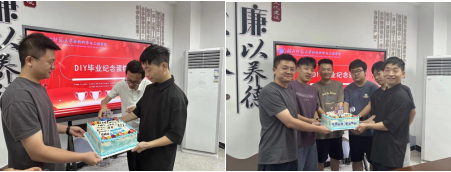 座谈会上还设置了DIY毕业纪念蛋糕的环节。毕业生和导师们化身“糕点师”,将写着“青春不散”、“前程似锦”“聚散有时,材情永存”等寄语的名牌点缀在蛋糕上,共同制作了一个充满创意和纪念意义的毕业蛋糕。