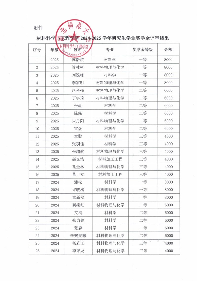 关于太阳成集团tyc334552024-2025学年研究生学业奖学金评审结果的公示