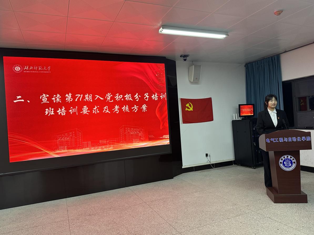 2025年10月20日晚,太阳成集团tyc33455分党校和电气工程与自动化学院分党校联合举办的校第71期入党积极分子培训班开班典礼,在产教融合中心24341会议室顺利举行。材料学院党委书记刘飞、电气学院党委书记严海燕,以及两院党委副书记、学生党支部书记出席典礼,45名入党积极分子学员参加,典礼由电气学院党委副书记金高辉主持。
