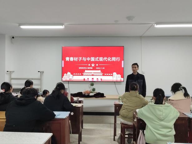 为深入学习贯彻党的二十届四中全会精神,引导青年学子将个人成长与中国式现代化建设紧密结合,11月20日,我院以“青春材子与中国式现代化同行”为主题组织开展班会活动。各班级班主任到场参与,通过理论学习、互动讨论、思想碰撞等形式,让党的二十届四中全会精神入脑入心,推动材料学子明晰使命、勇担重任。