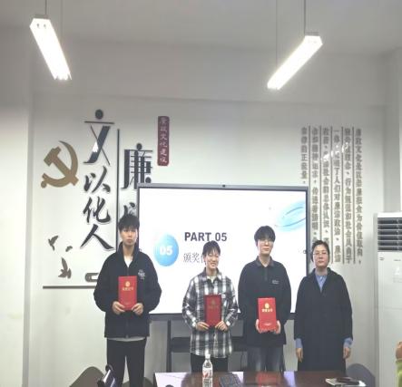 最令人期待的颁奖环节随后展开。经评委团评审与综合打分,大赛获奖名单正式揭晓:在热烈的掌声中,辅导员林静为三等奖获奖团队颁奖;专任教师纪永生为二等奖获奖团队颁发荣誉;最后,一等奖获奖名单公布,殷婷婷副书记为一等奖获奖团队颁奖,并向所有获奖团队表示祝贺,鼓励大家珍惜荣誉、再接再厉。